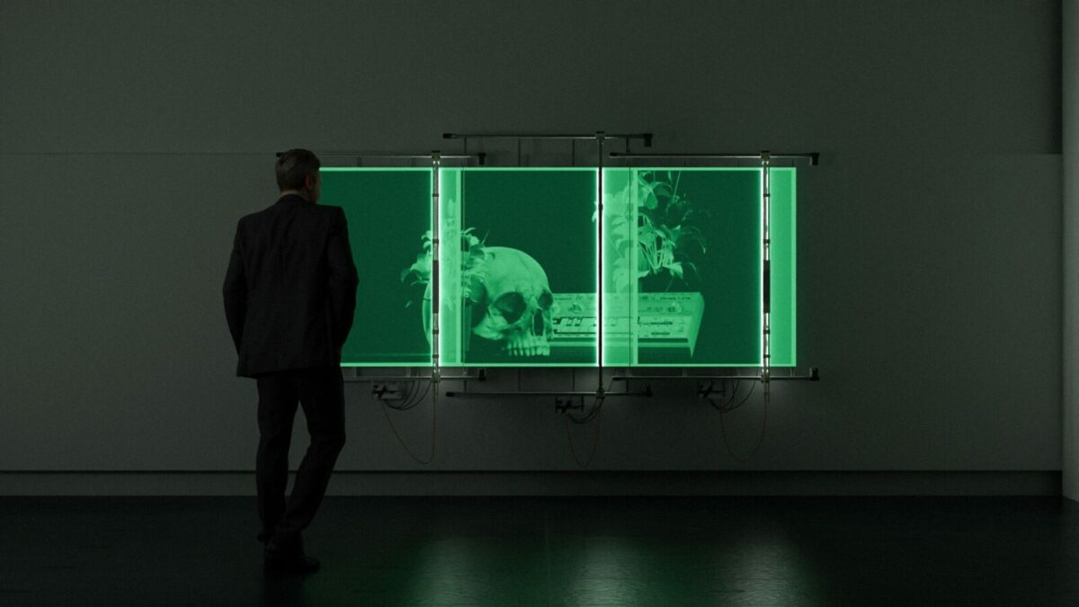 Céphéide est une œuvre-outil inédite qui projette des images lumineuses éphémères sur supports phosphorescents, tissant un récit fragile entre analogique et numérique. Inspirée de la vanité picturale (crâne, fleurs, sablier extraits des collections de la BnF), l’œuvre révèle dans l’obscurité des figures allégoriques en perpétuelle métamorphose. Elle transcende le memento mori pour devenir un appel à préserver notre mémoire collective face à l’irréversibilité du temps.