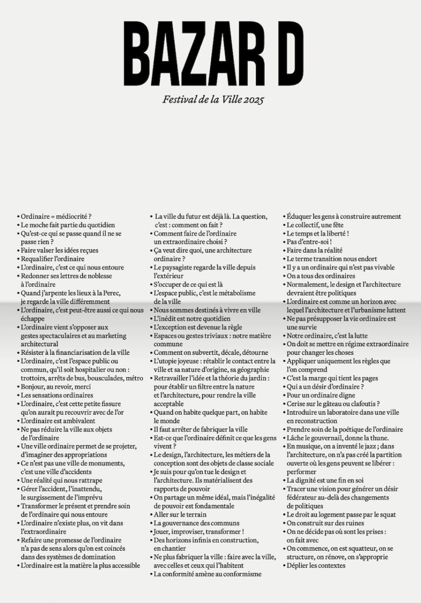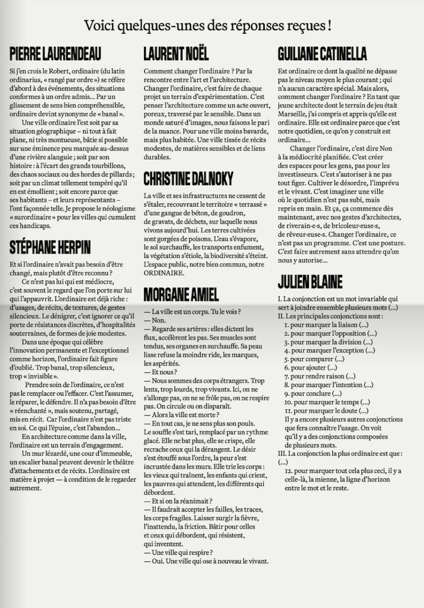 Le commun redeviendra une évidence, et l’ordinaire, notre tâche, notre responsabilité, notre puissance. Si elle devait être définie, alors faisons que la ville ordinaire soit celle de la dignité en actes ! »